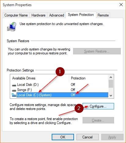 در صورت غیرفعال بودن این قابلیت در ویندوز میتوان به روش زیر آنرا فعال کرد. برای انجام این کار از منوی Start عبارت create a restore point را جستجو کرده و طبق تصاویر زیر عمل کنید: